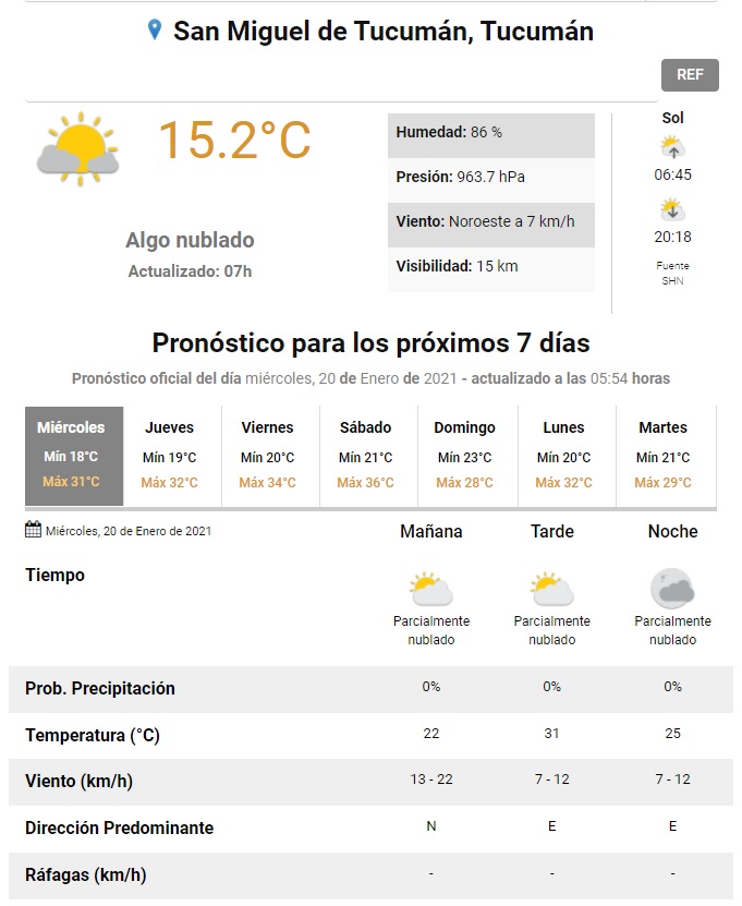 Al igual que ayer y el lunes, este miércoles será un día soleado y sin lluvias. La jornada arrancó con una mínima de 18° y se espera que la máxima alcance los 31°. El cielo permanecerá parcialmente nublado y no hay probabilidad de lluvias.
