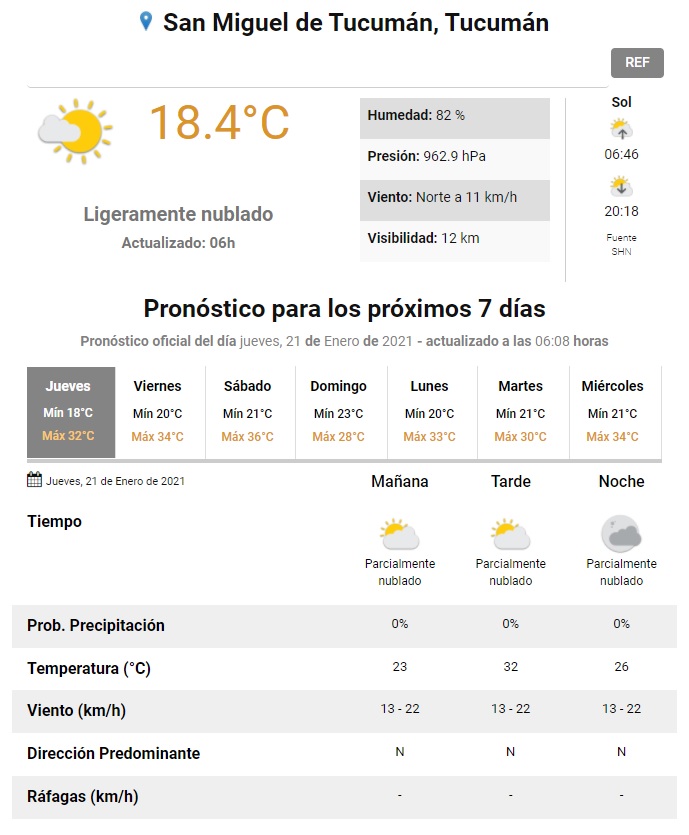 Tal como lo viene anunciando el Servicio Meteorológico Nacional, la temperatura continuará en ascenso los últimos días de la semana. La jornada de jueves comenzó con una mínima de 18° y un porcentaje de humedad del 80%. Para hoy se espera una máxima de 32°, anticipando un fin de semana con mucho calor.