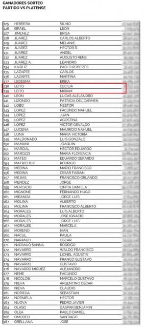 Según el listado oficial emitido por Atlético, entre los ganadores estuvieron Cecilia y Miriam Leito, dos de las hijas de Mario Leito, presidente del club; y Flavio Salvatierra, hijo del vicepresidente, Enrique Salvatierra.