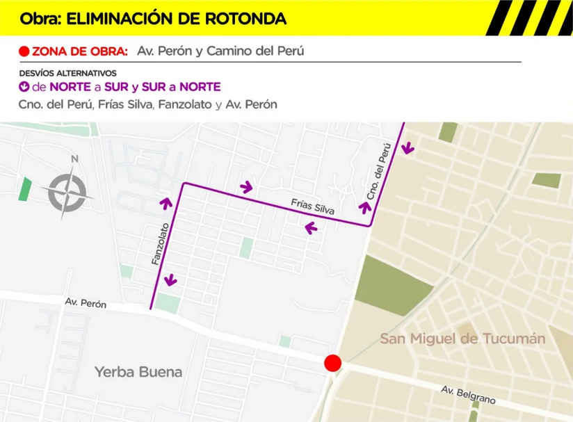 Para ir a Yerba Buena el que viene por camino del Perú, debe girar en Frías Silva y continuar hasta Juan Terán o hacerlo por Fanzolato hasta Avenida Perón.