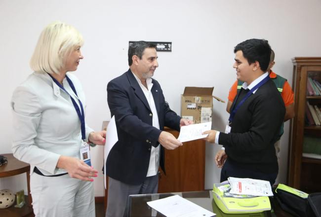 “Es fundamental que cuenten con un elemento como este. Hubo una capacitación previa para su uso y en reanimación cardiopulmonar. Hoy ya estamos finalizando un proceso, entregando el diploma y el equipamiento, y solo queda que las personas que fueron capacitadas, si es que lo necesitan, puedan proceder en caso de emergencia”, manifestó Medina Ruiz.