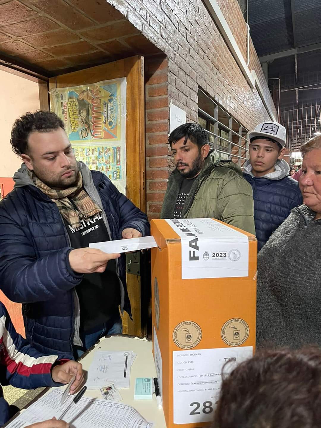 El joven candidato a legislador por el Este, Dr. Tomas Cobos, emitió hace instantes su voto, lo hizo en la Escuela Ramón Paz Posse, ubicada en Banda del Río Salí. Cobos recibio muestras de apoyo y afecto de los votantes allí presentes.