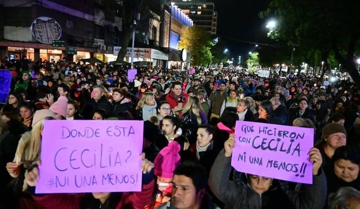 «Gritemos juntas, ¡falta Cecilia!» y «Ni una menos, te queremos viva» fueron algunas de las inscripciones que levantaron los manifestantes. También mencionaron otros casos de Chaco: «Cecilia, Mariela, ¡presentes! ¡Ahora y siempre!», en referencia al crimen de Mariela Fernández, ocurrido en 2017. Ese hecho fue un femicidio por el que recibió perpetua Facundo López, su ex pareja.