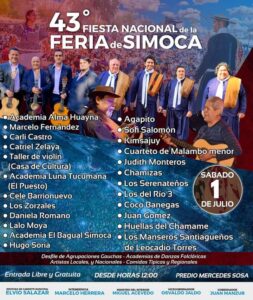 Este sabado 1 de julio, se llevará a cabo la segunda jornada de la Fiesta Nacional de la Feria, la misma tendrá su inicio a las 12:00 hs y contará con el Desfile de Agrupaciones Gauchas, Agrupaciones de Danzas Folclóricas, Artistas Locales y Nacionales, Comidas Típicas y más. La entrada es libre y gratuita.