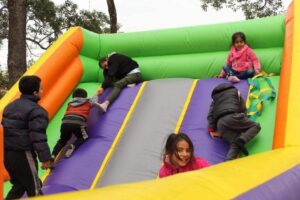 En comunidad se compartieron juegos mecánicos, peloteros, jumping, juegos participativos, chocolate y golosinas para todos los presentes.