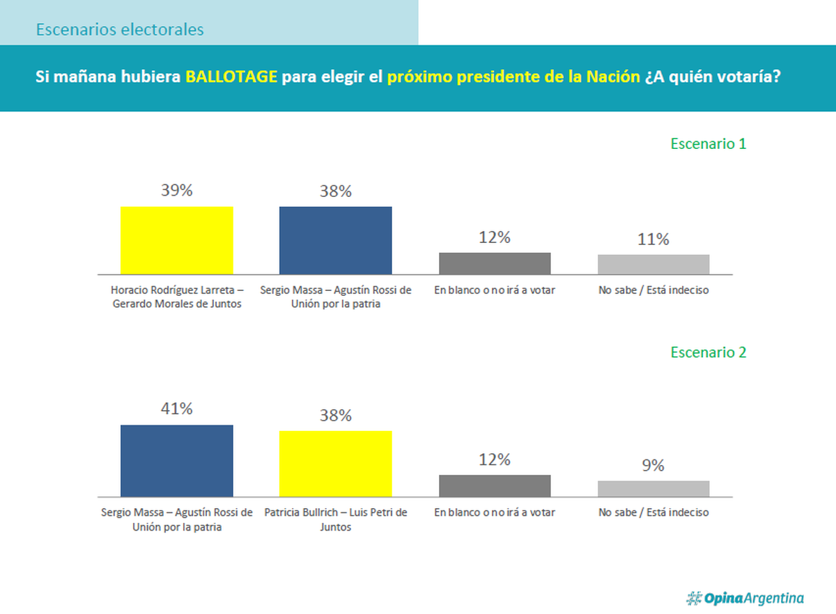 El estudio de Opina Argentina también indaga en posibles escenarios de balotaje, una instancia que ya anticipa, por ejemplo, el gobernador de Formosa, el peronista Gildo Insfrán.