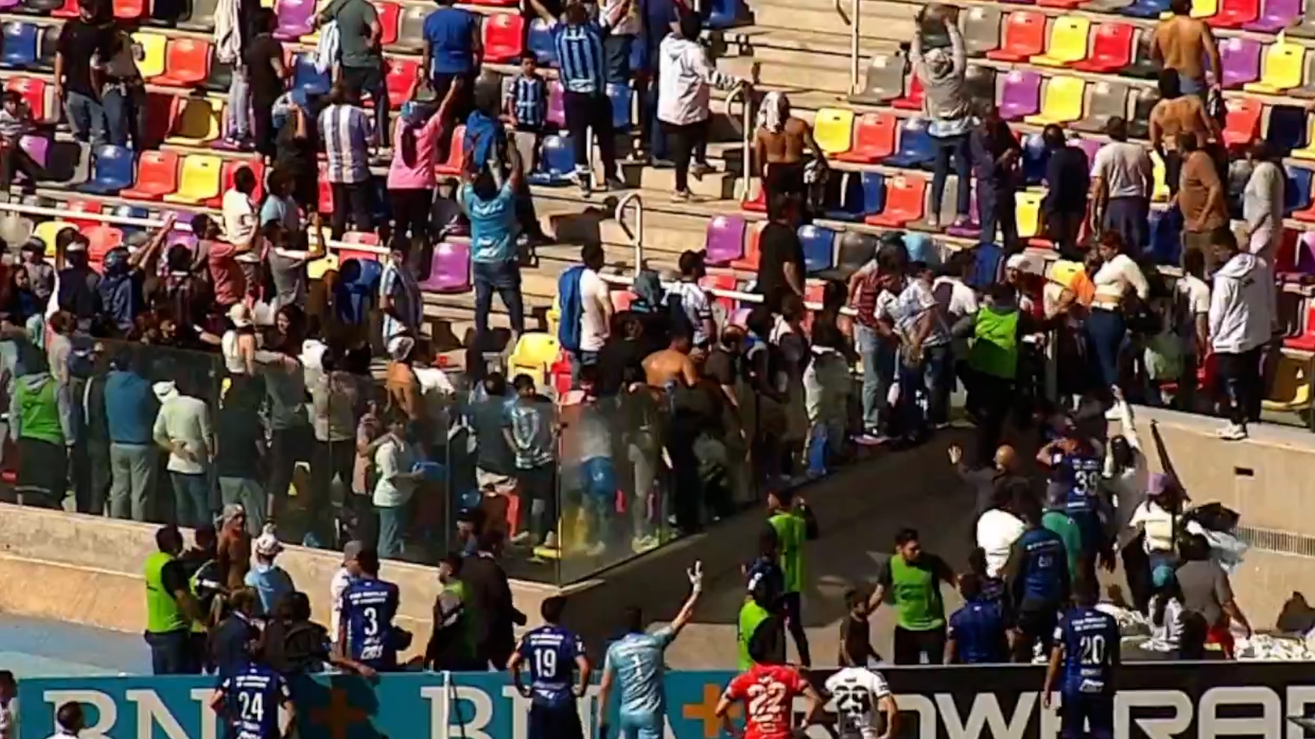 Esta decisión provocó una serie de corridas por parte de algunas personas y los simpatizantes de la visita se alojaron en un costado para resguardarse de cualquier represalia. Los jugadores de ambos conjuntos se acercaron para pedir tranquilidad con la iniciativa de volver a jugar un encuentro clave con vinculación a la pelea para evitar el descenso. La preocupación se acrecentó ya que había familiares de los futbolistas en las butacas.