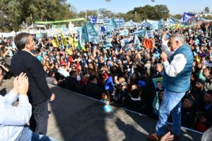 Y remarcó: «cada uno de los representantes que están acá, intendentes, legisladores, intendentes electos, legisladores electos, concejales electos y concejales, delegados y delegados electos, pero por sobre todo una cosa, la militancia, apoya a esta fórmula. Hasta la victoria, compañeros».