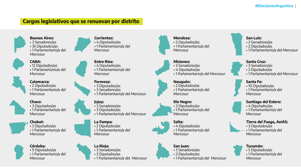 Cuál será la lista definitiva de candidatos/as con la que cada fuerza competirá en las elecciones generales del 22 de octubre, donde se elegirá el/la próximo/a presidente/a, vicepresidente/a, los/as representantes argentinos/as en el Parlasur y la composición parcial de la Cámara de Senadores y Diputados de la Nación.