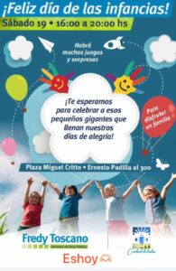 El secretario de Obras Públicas de la Municipalidad de San Miguel de Tucumán, Fredy Toscano invita a participar a niños y niñas a participar del festejo por el Día de las Infancias, el mismo se realizará el día de hoy a partir de 16:00 hs en Plaza Miguel Critto (Ernesto Padilla 300).