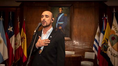Para la interpretación de estas ocho canciones e himnos patrios, grabados en el auditorio de la Usina del Arte en el barrio porteño de La Boca, contó con la participación de la Orquesta Académica del Teatro Colón y la dirección de Ezequiel Silberstein.