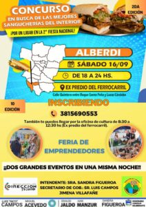 Por información e inscripciones los interesados deben dirigirse a la Dirección de Cultura Municipal de Alberdi de 08:00 a 12:00 hs o comunicarse al 3815690553.