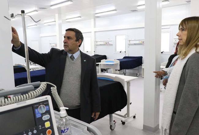 Medina Ruiz contó que este hospital modular cuenta con 34 camas, con la capacidad de transformarse en camas de terapia intensiva. Cuenta además con consultorios, sala de rehabilitación, entre otros servicios.