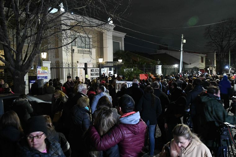 Las rejas de la casa del médico se llenaron poco a poco de carteles con inscripciones y la tarde fue dándole paso a la luz de las velas y de las antorchas que se congregaron en las manos de la mayoría de los presentes. “Justicia por Silvina Luna, que vaya preso este hombre, ¿qué le pasa? ¿tiene poder?”, reflexionó una mujer que miraba las ventanas cerradas del hogar donde vive Lotocki junto a su mujer María José Favarón y sus hijos.
