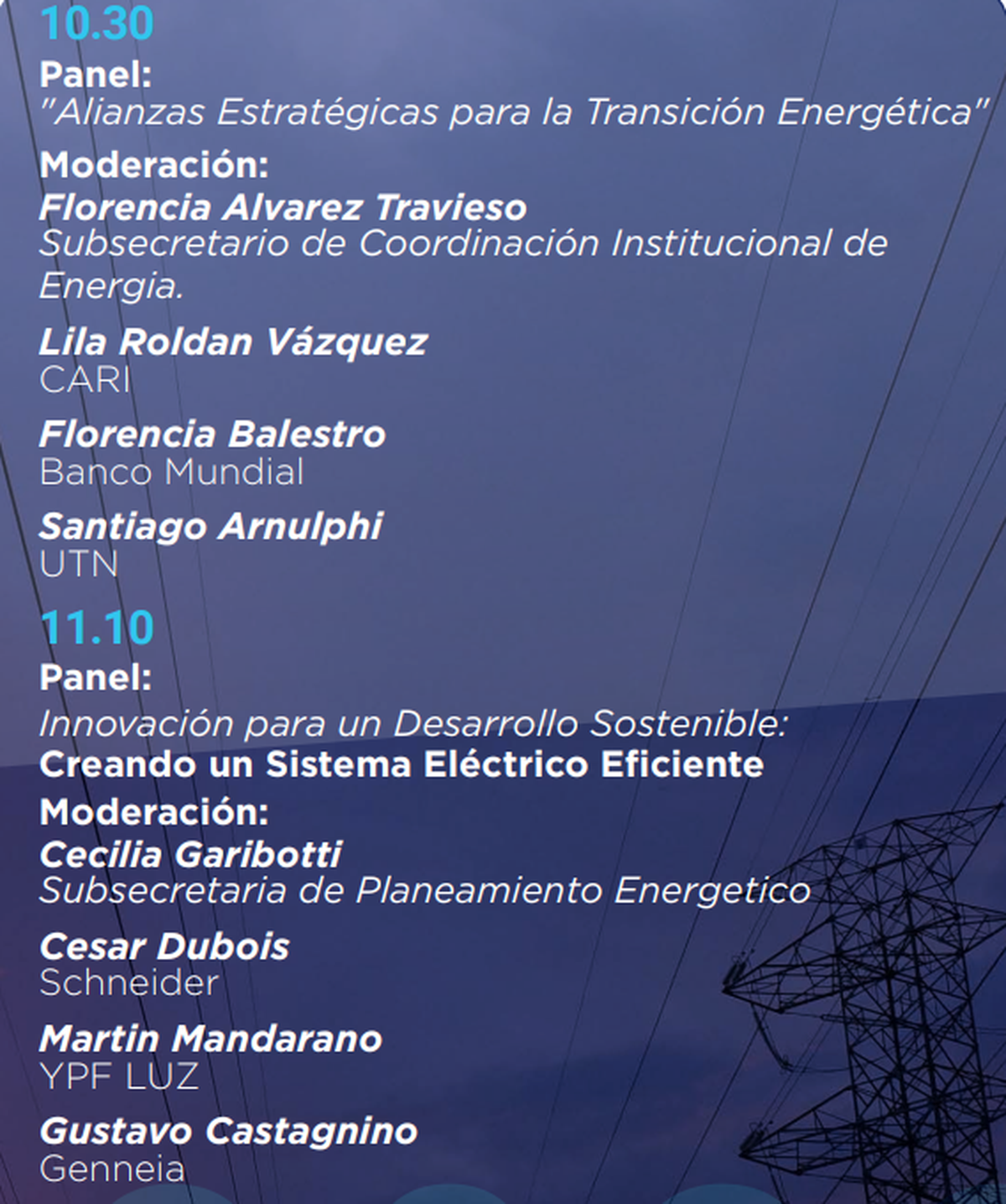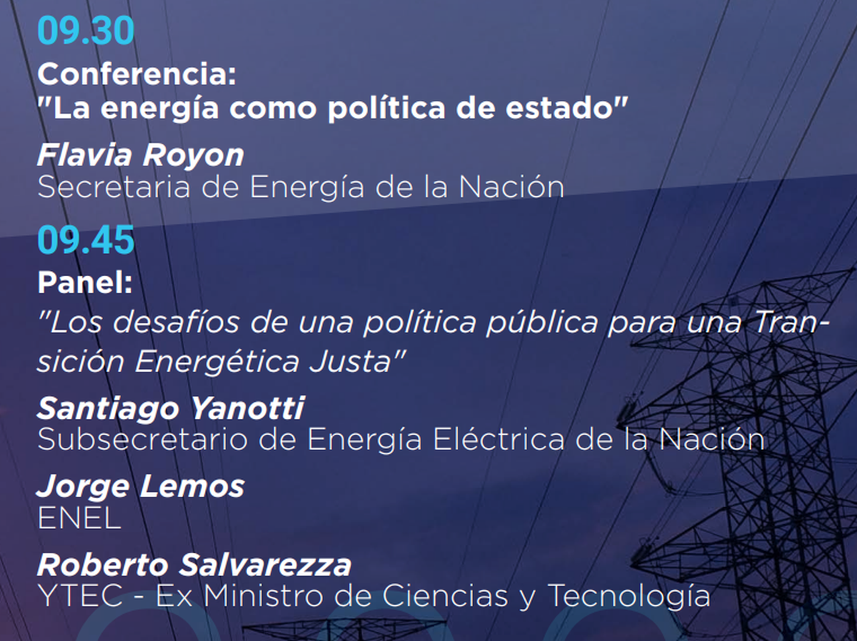 Entre los disertantes están la secretaria de Energía de la Nación, Flavia Royón, el Subsecretario de Energía Eléctrica de la Nación, Santiago Yanotti y el presidente de Y-TEC y ex ministro de Ciencia y Tecnología, Roberto Salvarezza.