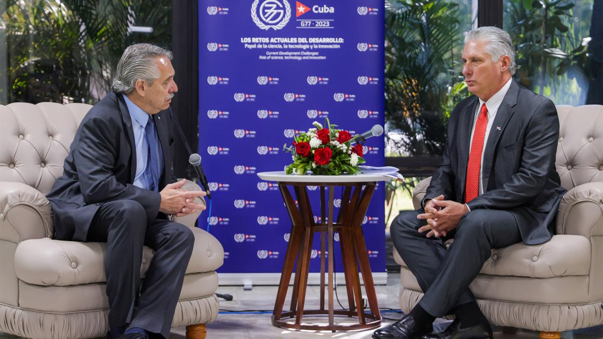 El presidente llegó a Cuba el jueves por la noche y el viernes participó de la cumbre del G77+China, donde instó a «cambiar el sistema financiero que sigue operando con las mismas lógicas».