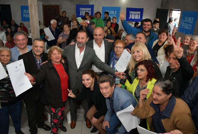 Juri dijo: “estamos entregando escrituras gracias a la colaboración de muchos dirigentes de aquí. El peronismo no se fija a quién le da. Simplemente es un derecho de la gente. Donde hay una necesidad hay un derecho y ese derecho lo cumplimos como peronistas. Nosotros estamos con la gente en cada barrio y en cada pueblo de la provincia”.