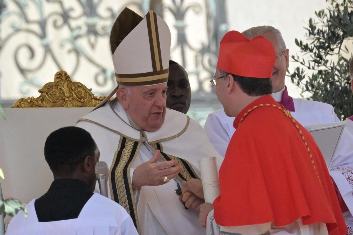 El pontífice encabezó este sábado su noveno Consistorio público como Papa en la Plaza San Pedro, con el que oficializó la creación de los nuevos purpurados, entre los que están los argentinos Víctor Manuel Fernández, prefecto del Dicasterio para la Doctrina de la Fe; el arzobispo de Córdoba Ángel Rossi y el fraile Luis Dri, de 96 años, quien no estuvo presente y recibirá las insignias en Buenos Aires.
