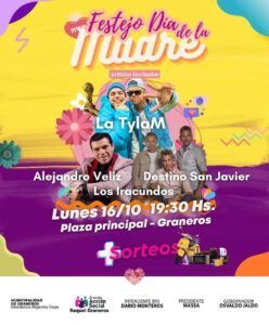 El municipio encabezado por Alejandra Cejas agasajará a las mamas en su día y lo hará con un gran evento el dia de hoy a partir de las 19:30 hs en Plaza Principal.