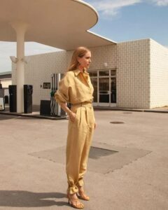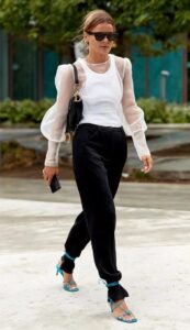 Para realizarlo es mejor hacerlo con pantalones fluidos, de corte recto o amplio así queda un fabuloso efecto babucha. ¿Cómo hacerlo? simplemente hay que anudar las sandalias por encima del pantalón y un poco por encima de la zona del tobillo.