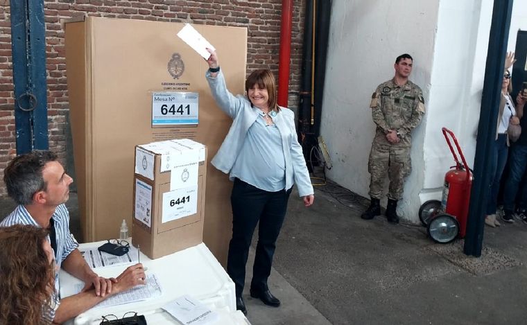 Cuando el 29,6% del padrón ya había votado en las elecciones generales, cuando el resto de los candidatos a presidentes ya habían emitido su voto, Patricia Bullrich, la representante de Juntos por el Cambio en estos comicios, se acercó al predio de La Rural por la calle Sarmiento minutos después de la una del mediodía. Sonriente, saludando a todos, prestándose a las selfies, vestida de celeste y con la escarapela en una de las solapas de su campera, tardó más de veinte minutos en llegar a la mesa de votación.