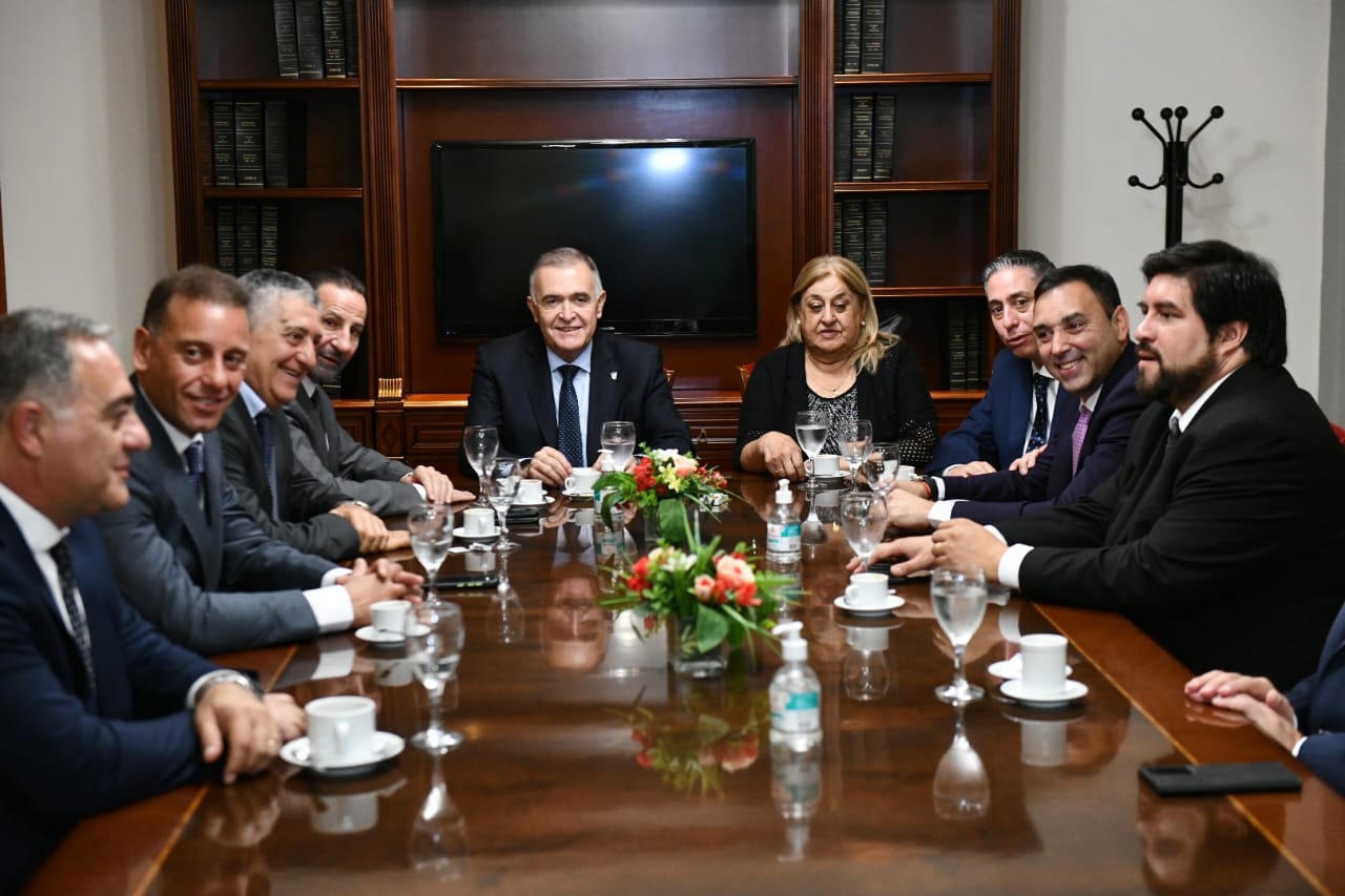El vicegobernador y gobernador electo Osvaldo Jaldo junto al vicepresidente primero de la Honorable Legislatura, Regino Amado recibieron a los concejales electos de la capital del bloque justicialista.