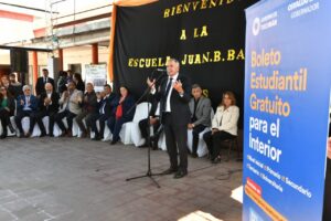 «Sabemos el esfuerzo que hacen el papá y la mamá hoy para mandar a los chicos a la escuela, comprarles el delantal, la ropa, y es nuestra obligación ayudarlos con algo. Y una manera de ayudar es el Boleto Estudiantil Gratuito”, comenzó diciendo el Gobernador que estuvo acompañado por la ministra de Educación, Susana Montaldo; el ministro del Interior, Darío Monteros; el ministro de Gobierno y Justicia, Regino Amado; y el comisionado comunal de La Florida, Arturo Soria.
