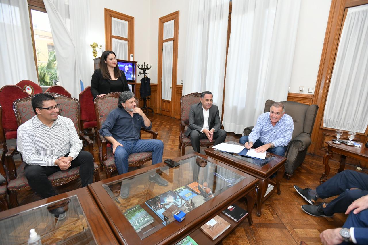 El gobernador Osvaldo Jaldo encabezó la firma de acuerdo salarial con el sindicato de trabajadores del Servicio Provincial de Agua Potable y Saneamiento (Sepapys), participaron los ministros de Gobierno y Justicia, Regino Amado; Economía, Daniel Abad; secretario de Gobierno, Raúl Albarracín; el secretario general del gremio, Walter Delgado y el adjunto, Marcelo Ruiz Huidobro
