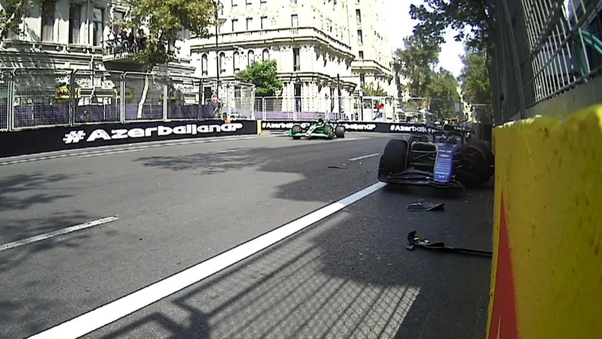 Colapinto perdió el control de su Williams FW46 al llegar a la curva cuatro del trazado callejero de Bakú y golpeó el costado izquierdo del monoplaza, causando daños considerables. La sesión fue detenida inmediatamente con bandera roja para permitir que se retire el coche de Colapinto.