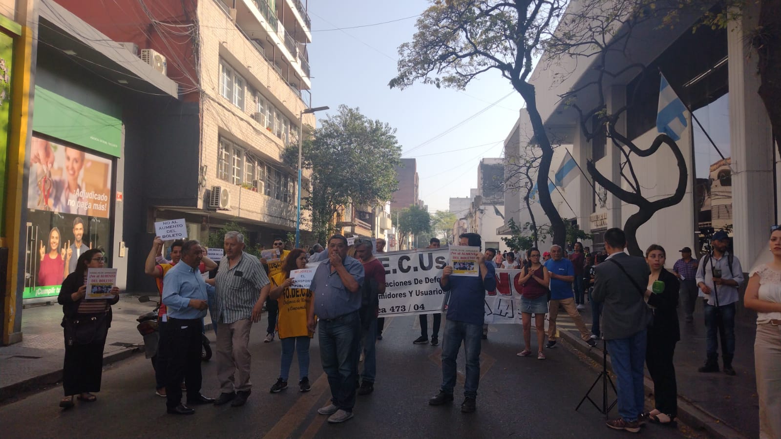 Este jueves, el Concejo Deliberante de San Miguel de Tucumán sesionó para aprobar el aumento de boleto del transporte público de pasajeros y mientras se lleva a cabo la sesión, manifestantes y movimientos sociales de la provincia se hicieron presentes en las puertas del HCD para remarcar su descontento con esta medida interrumpiendo el tránsito en calle Monteagudo y 24 de septiembre.