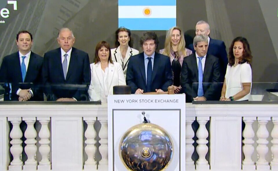 Durante su discurso en un auditorio de la Bolsa, las palabras de Milei en Wall Street siguieron el libreto habitual de, primero, describir la herencia con un Banco Central quebrado, riesgo de una hiperinflación, déficits gemelos, fuertes vencimientos de deuda por venir y el acuerdo con el FMI caído. En esa línea, detalló las reformas que encaró con el ministro de Economía Luis Caputo, el presidente del Banco Central Santiago Bausili y el secretario de Finanzas Pablo Quirno. Y volvió a remarcar que la disciplina fiscal es su principal activo.